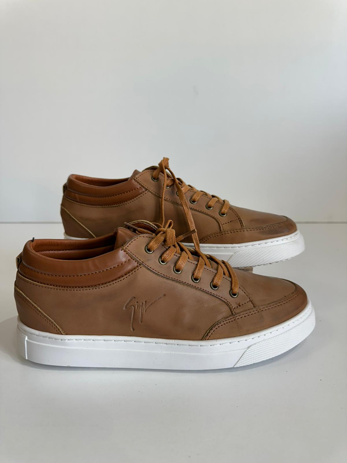 Sneaker Premium Camel – Cuir Lisse – Semelle Blanche